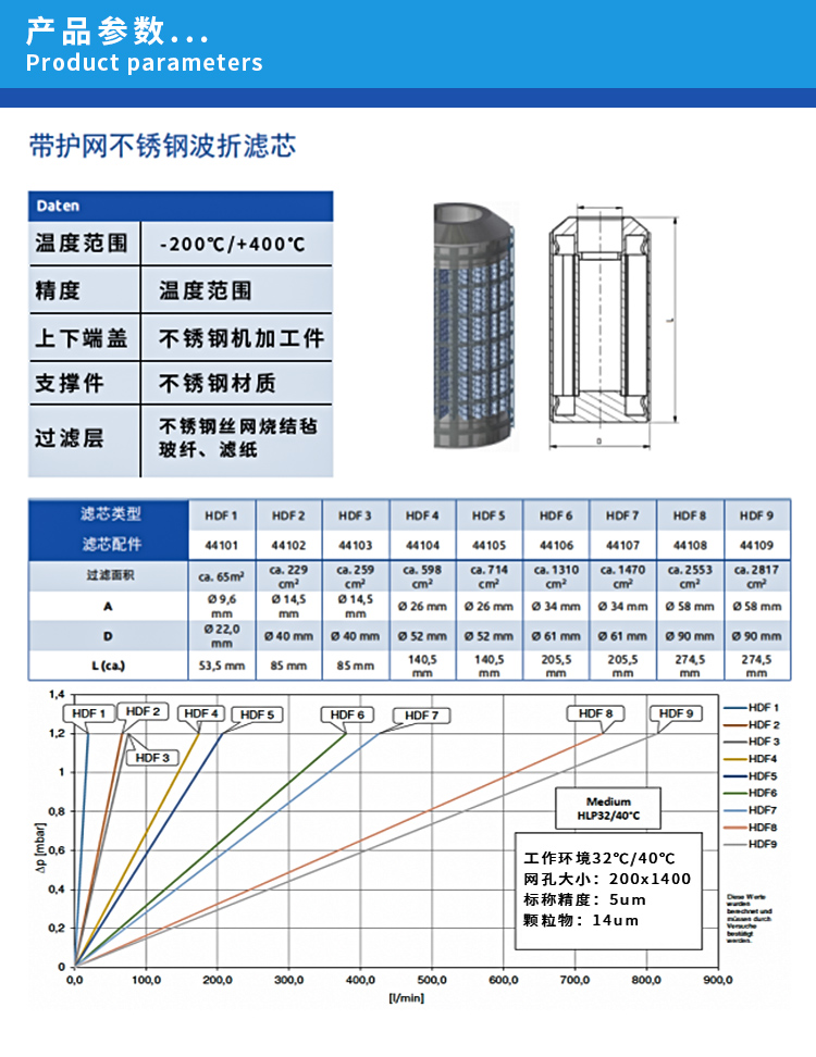 不锈钢折叠滤芯由 201、304、316L 不锈钢制成,它采用折叠结构,将过滤材料折成波浪状,过滤面积比普通直筒滤芯增大 3 - 5 倍。压力损失小,过滤效率高。 滤芯靠滤网不同孔径拦截杂质,过滤精度在 1 - 100μm,能满足多种行业的过滤要求。还可通过反冲洗、超声波清洗等方式再生,能重复使用,降低成本。
